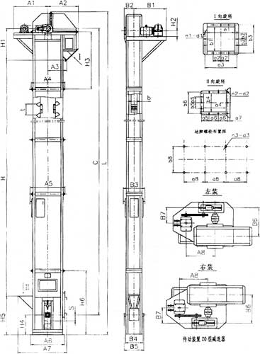 (一)TH型斗提機(jī)外形及安裝尺寸