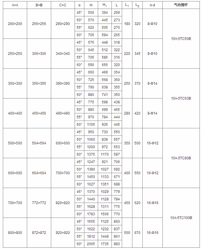 A×A | B×B | C×C | α | H | L | L1 | L2 | n-d | 電動(dòng)裝置 | 功率(kw) |