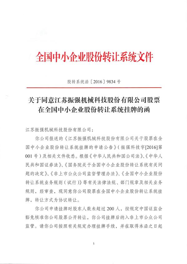 江蘇振強(qiáng)機(jī)械科技股份有限公司 >> 公司簡(jiǎn)介 >> 資質(zhì)證書(shū) >> 允許振強(qiáng)股份掛牌