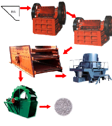沙石生產(chǎn)線,砂石生產(chǎn)線,砂石生產(chǎn)線設(shè)備,砂石線,砂石生產(chǎn)設(shè)備基本流程:大塊石料經(jīng)料倉由振動給料機(jī)均勻地送進(jìn)鄂式破碎機(jī)進(jìn)行粗碎,粗碎后的石料由皮帶輸送機(jī)送到反擊式破碎機(jī)進(jìn)行進(jìn)一步破碎;不滿足粒度要求的石子由皮帶輸送機(jī)返料送到反擊式破碎機(jī)進(jìn)行再次破碎,形成閉路多次循環(huán)。細(xì)碎后的石料由皮帶輸送機(jī)送進(jìn)振動篩進(jìn)行篩分,篩分出幾種不同規(guī)格的石子,滿足粒度要求的石子由成品皮帶輸送機(jī)送往成品料堆;成品粒度可按照用戶的需求進(jìn)行組合和分級,為保護(hù)環(huán)境,可配備輔助的除塵設(shè)備。