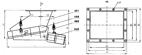 5. 調(diào)節(jié)前后減振器使給煤槽與進(jìn)煤斗和落煤管成均勻間隙,間隙大小一般為20一30mm2不允許與其它部件相碰。并保證給煤槽呈水平狀態(tài),如需增大煤量,可使給料槽向下傾斜0一10°。