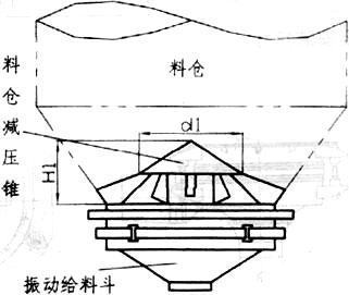 慣性振動(dòng)給料斗在設(shè)計(jì)計(jì)算中已考慮了一定的倉(cāng)壓,但建議在料倉(cāng)內(nèi)物料高度大于2m時(shí),在料倉(cāng)內(nèi)安裝料倉(cāng)減壓錐,以確保振動(dòng)給料斗更穩(wěn)定地工作,特別是確保其給料精度更趨準(zhǔn)確。料倉(cāng)減壓錐應(yīng)焊接在料倉(cāng)內(nèi),并保持平穩(wěn)。