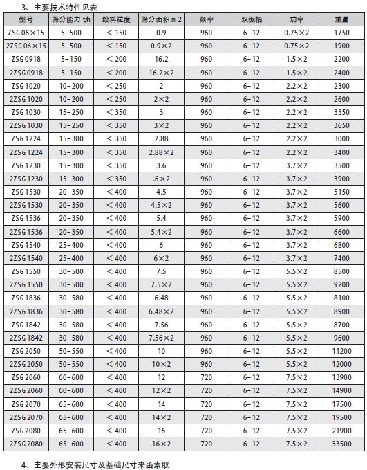 ?。?)敝開型(ZSG-□×□)為座式,無防塵蓋板,結(jié)構(gòu),用于大篩分能力、無粉塵污染的顆粒物料的篩分作業(yè)