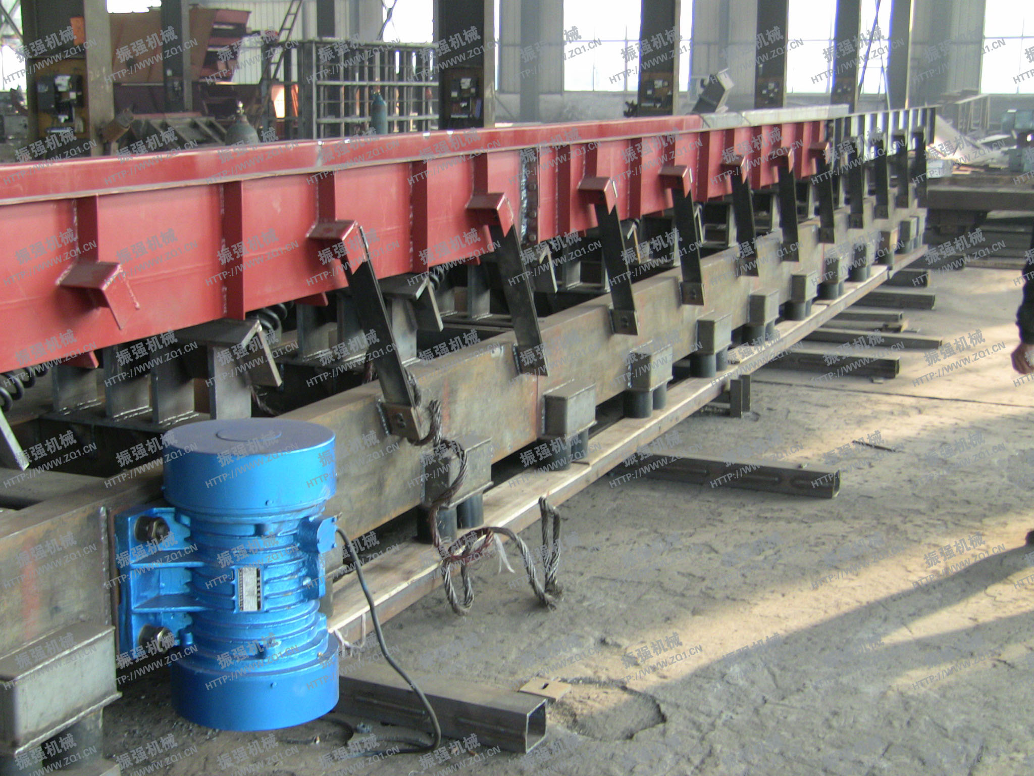 2. SZF型慣性振動(dòng)輸送機(jī)采用兩臺(tái)振動(dòng)電機(jī)作為激振動(dòng)源,運(yùn)用自同步原理,兩臺(tái)振動(dòng)電機(jī)反向轉(zhuǎn)動(dòng),使輸送機(jī)底部平衡架產(chǎn)生往復(fù)振動(dòng),經(jīng)過主振簧與導(dǎo)向板簧的作用,帶動(dòng)上部輸送槽振動(dòng),從而達(dá)到輸送物料的目的。該機(jī)是一種通用輸送機(jī)械,除用于水泥行業(yè)外,還可用于冶金、礦山、化工、電力等行業(yè),是一種理想的新型輸送設(shè)備。